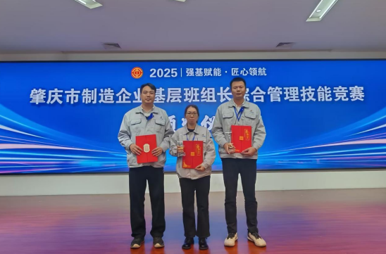 廖泰英、谭竣鸿、温小燕三位选手代表公司出征,紧扣肇庆市制造业转型升级战略方向,围绕生产协调、团队管理、品质管控等基层管理核心课题精心备赛。赛场上,他们凭借深厚的实战积累与专业的管理思路突出重围,温小燕以《提升 CMM 测量效率》课题摘得一等奖,谭竣鸿的《降低二厂压铸领班异常处理时间》课题荣获三等奖,廖泰英的《降低 GQFT23 工废不良率》课题收获优秀奖。